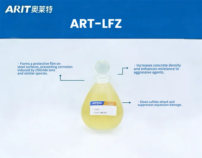 ART-LFZ is a chemical additive used to enhance the durability of reinforced-concrete structures, primarily to prevent or retard steel reinforcement corrosion within concrete.