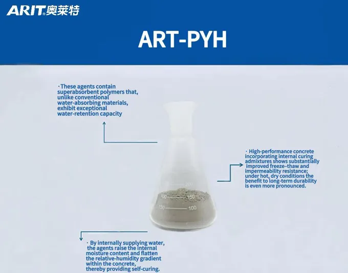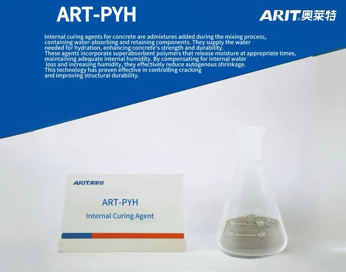 Internal curing agents for concrete are admixtures added during the mixing process, containing water-absorbing and retaining components. They supply the water needed for hydration, enhancing concrete's strength and durability. These agents incorporate superabsorbent polymers that release moisture at appropriate times, maintaining adequate internal humidity. By compensating for internal water loss and increasing humidity, they effectively reduce autogenous shrinkage. This technology has proven effective in controlling cracking and improving structural durability.